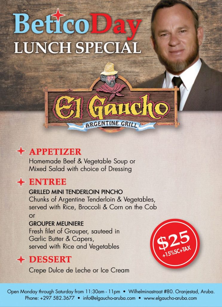 For any reservation assistance, or other inquiries, please contact us at +297 582-3677 or reservations@elgaucho-aruba.com